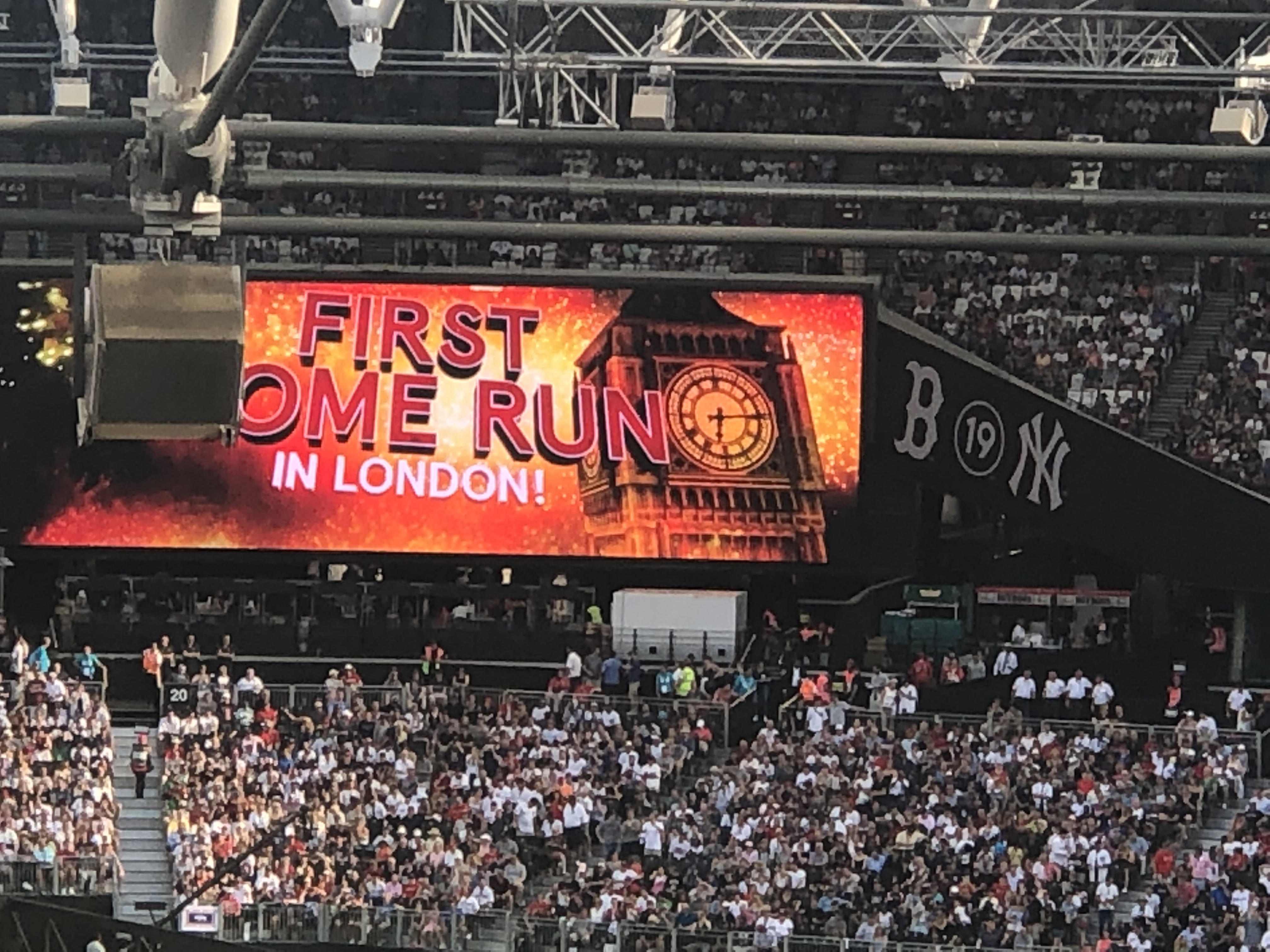 The first inning was hysterical, it took almost an hour and the bats were hot. When the first home run was hit, there was a special graphic on the Jumbotron that said first home run in London.