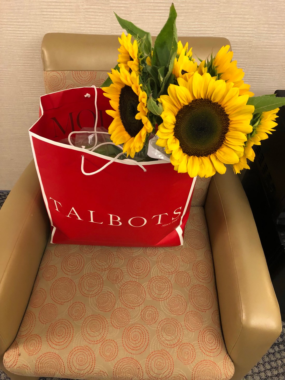 It’s day 5 of a 5 day trip and I’m in Philadelphia. It’s also Saturday and that means the Rittenhouse square farmers market is on!! I love farmers markets, so I was off at 8:45 to make the 9:00 start. Rumor had it that to get the best flowers, you need to be there early. One of the many perks of my job is being able to bring home wonderful treats from around the world. Today, I purchased a bouquet of sunflowers, fresh corn on the cob, and some artisan chocolates….all for a celebration for a young friend home from college for the week. I love local markets, both for the goods offered and meeting local people. In this case, mostly because I miss the farmers market where I lived in Maryland for 21 years. I love Philadelphia for the neighborhoods and ease of walking around. When I venture out, I usually carry a tube of glucose tablets and two little bottles of super fast acting glucose liquid. Personally, when out and about , I want something that will work ASAP. I rely on my DEXCOM to see which way I’m trending and I try to catch the lows before they’re a problem. This particular trip, I was doing some highly anticipated Labor day sale shopping. That means I was trying on clothes…….for some reason, I’ve always had issues with going low after trying on clothes, so I was prepared. Anyone else have that issue? The sales were a success and now it’s time for the flight home. Big bonus……in 7 hours, I’m officially on vacation!!! Happy Labor Day weekend !!
