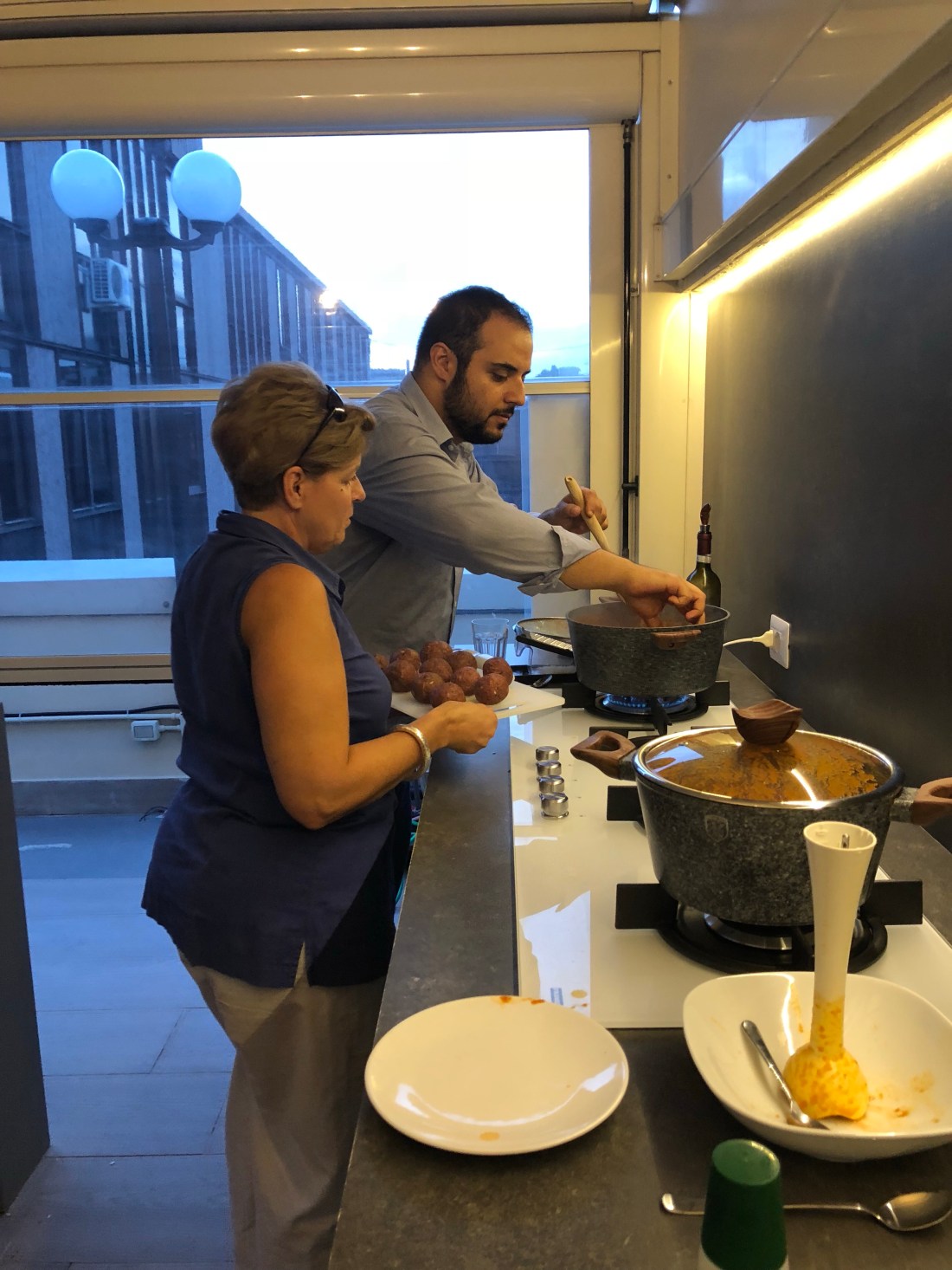 Next up was another Airbnb experience. This time “Grandma Sauce, a cooking experience ” . This experience was with Andrea at his loft and we had a blast. He has crafted an out door kitchen and dining area on his rooftop that was incredible. His love of cooking and the ingredients is evident right away. There were two couple and myself. The couples were from Northern Virginia and North Carolina. We learned to make 2 sauces, meatballs and how to use them….a gnocchi bake, over meatball, and over pasta. If you look at our picture, it’s obvious how much fun we had! Please look Andrea’s experience when you come to Rome, you’ll love it.