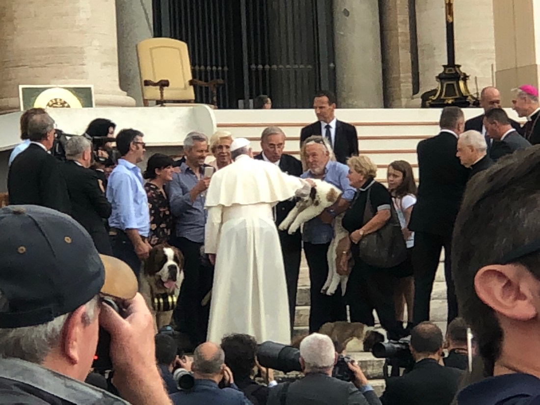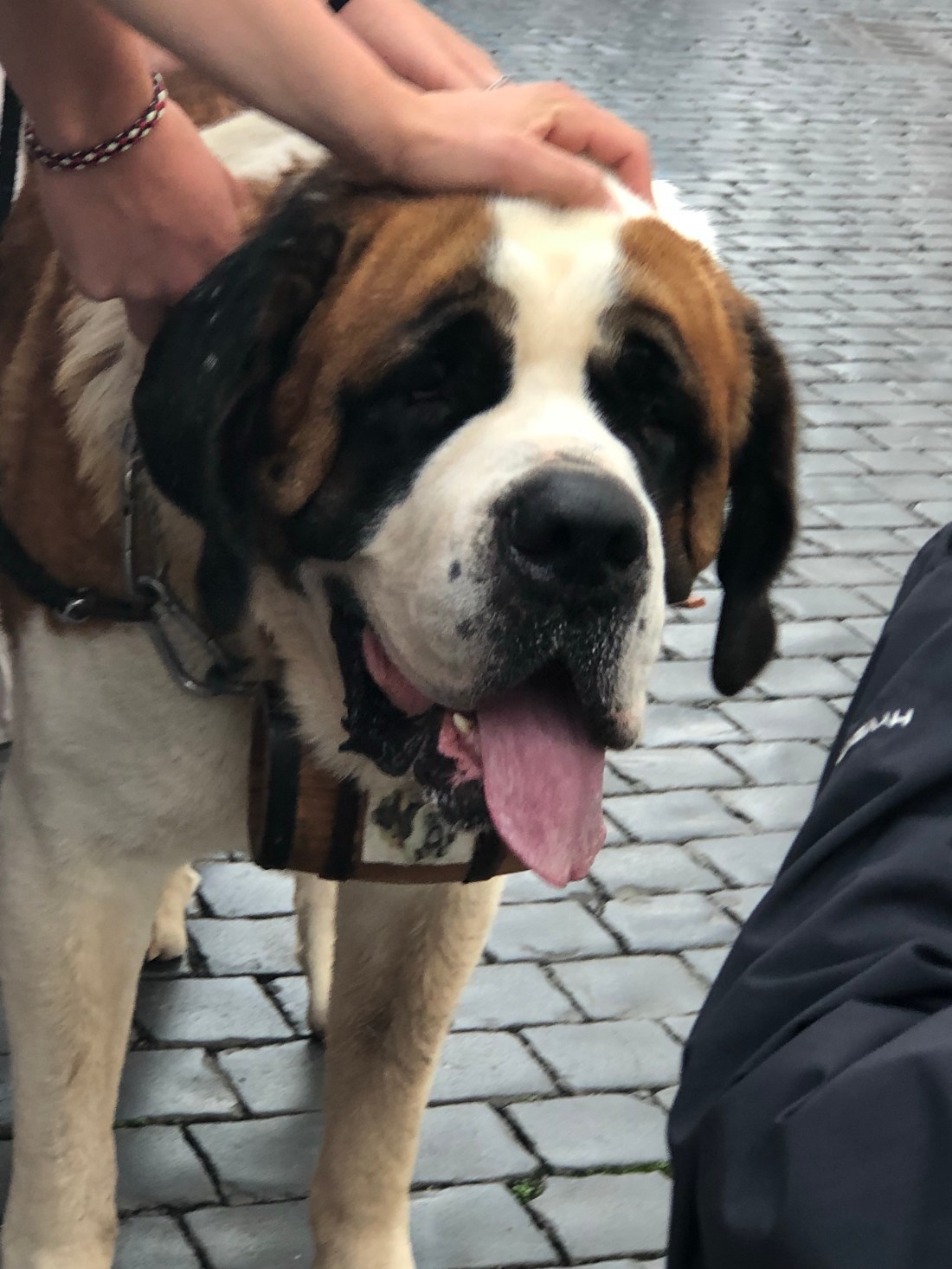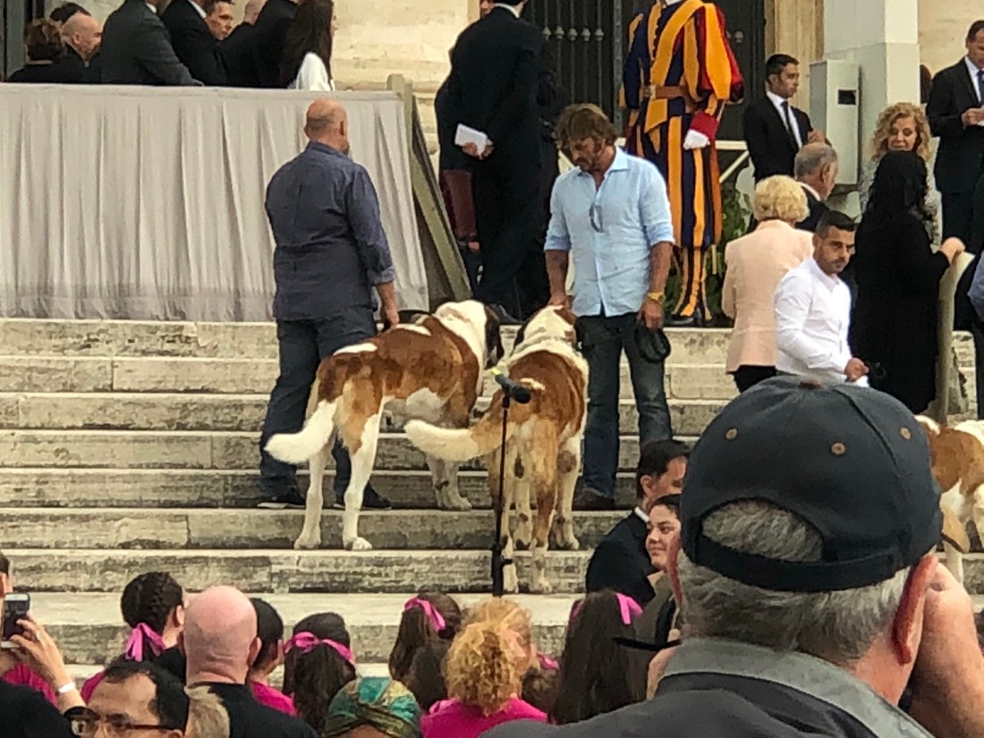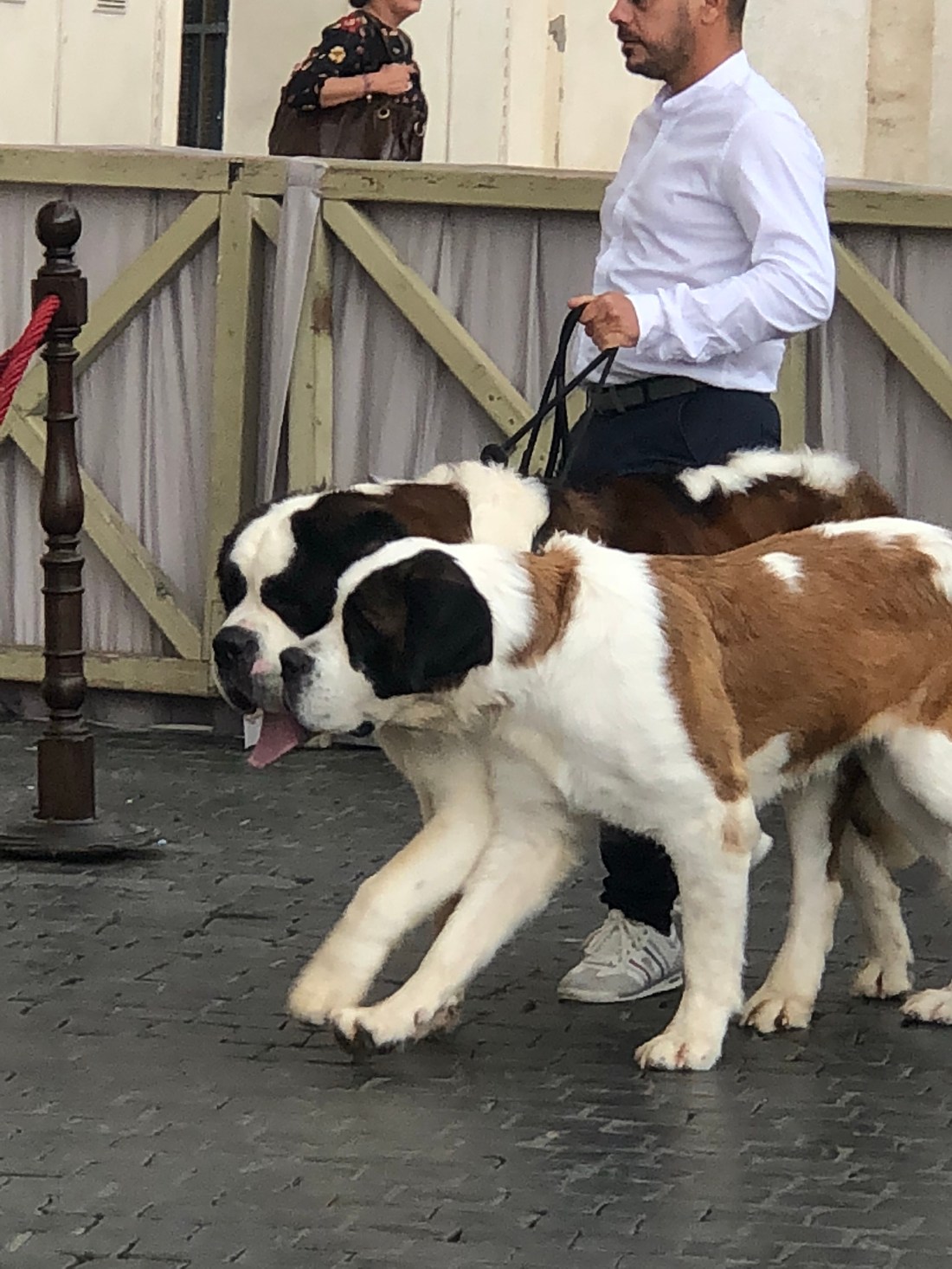 The service was in Italian, French, German, English, Portuguese , Polish and another that I didn’t recognize. The message was about respect for family. New marriages were blessed along with religious items. There was what I think was a blessing of Saint Bernards, but I’m not sure. I do know that it made for a great photo op. And, if you know me, you know I loved the dogs getting the attention.
