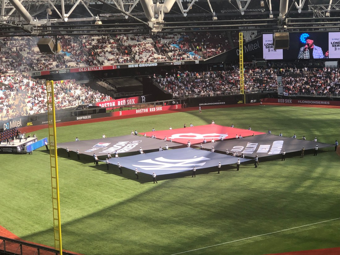 The first inning was hysterical, it took almost an hour and the bats were hot. When the first home run was hit, there was a special graphic on the Jumbotron that said first home run in London.