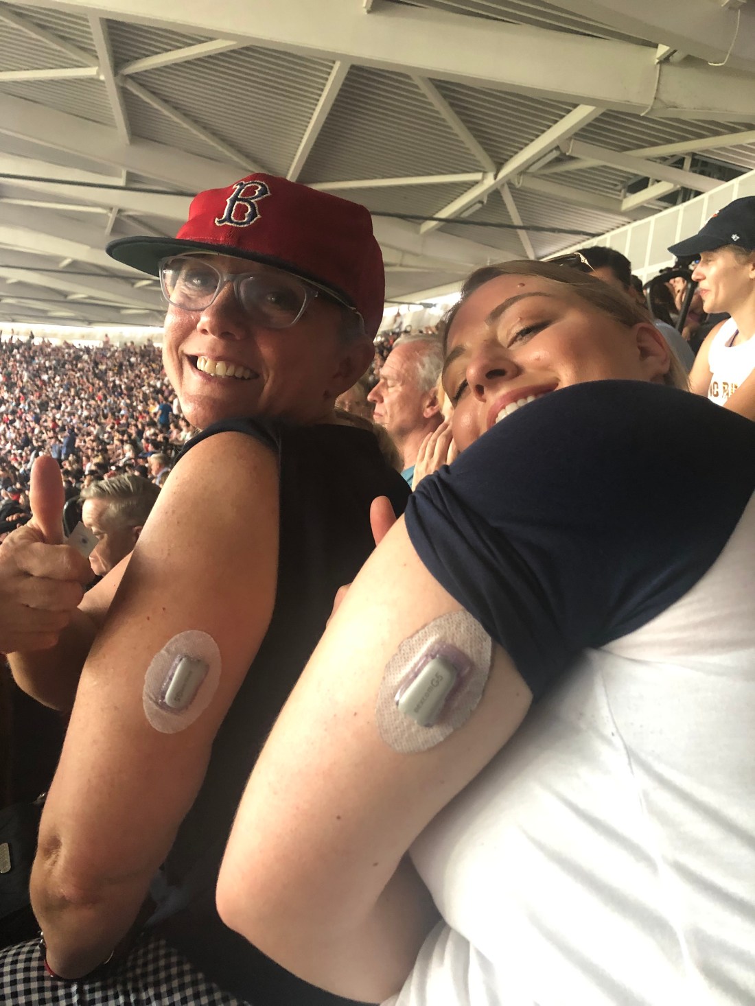 We were surrounded by fun people rooting for both sides and quite a few locals. Which leads me to the biggest surprise of the day. After the first inning (again, it was an hour long) the family to our left decided to go get food. We stood up to let them pass and all of the sudden, I hear the younger lady yell “Diabuddies”!!!!!