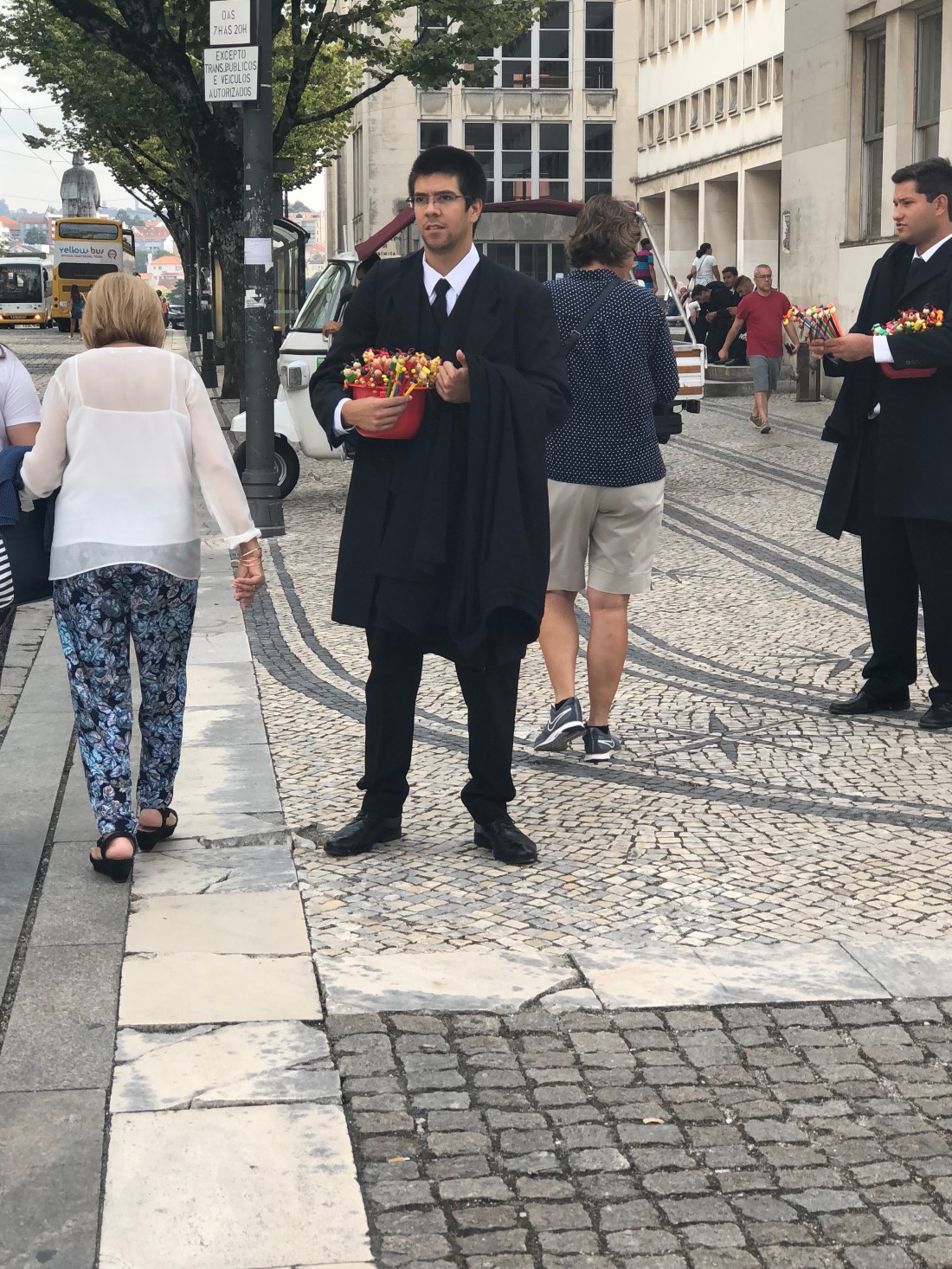 What a lovely day!! Dark and early we headed for the Oriente train station to ride to Coimbra. We were lucky to sit across from a young couple from Rockville, MD and chat the whole way, so the ride went very quickly. We arrived early in Coimbra and went straight to the central plaza, where we stopped for the local pastry and coffee. Shops were already open so we looked around a bit and found one of the small music troupes singing fado. This particular group were all female and attending medical school. They were very good and funny too. If you didn’t see the video earlier on my Facebook page, check it out. Next up, we hired a Tuk Tuk to give us a tour of the city and give our tired