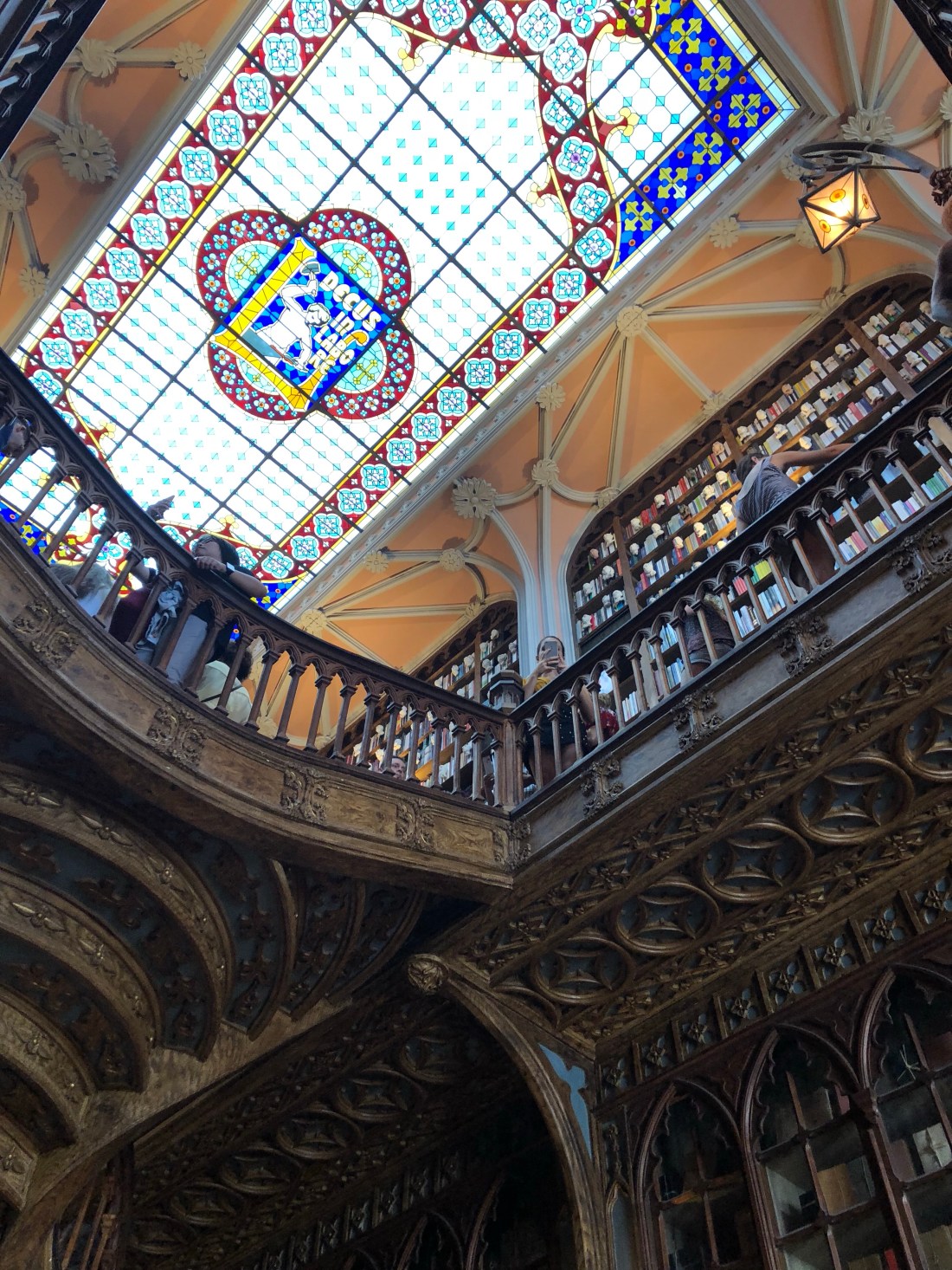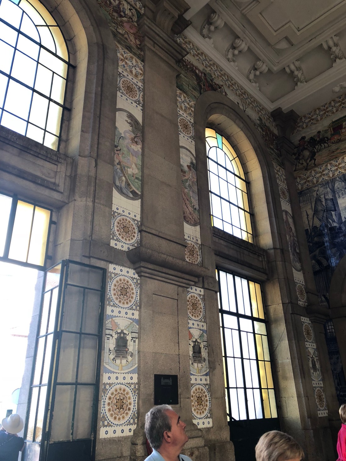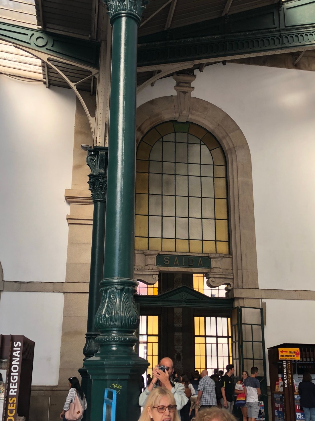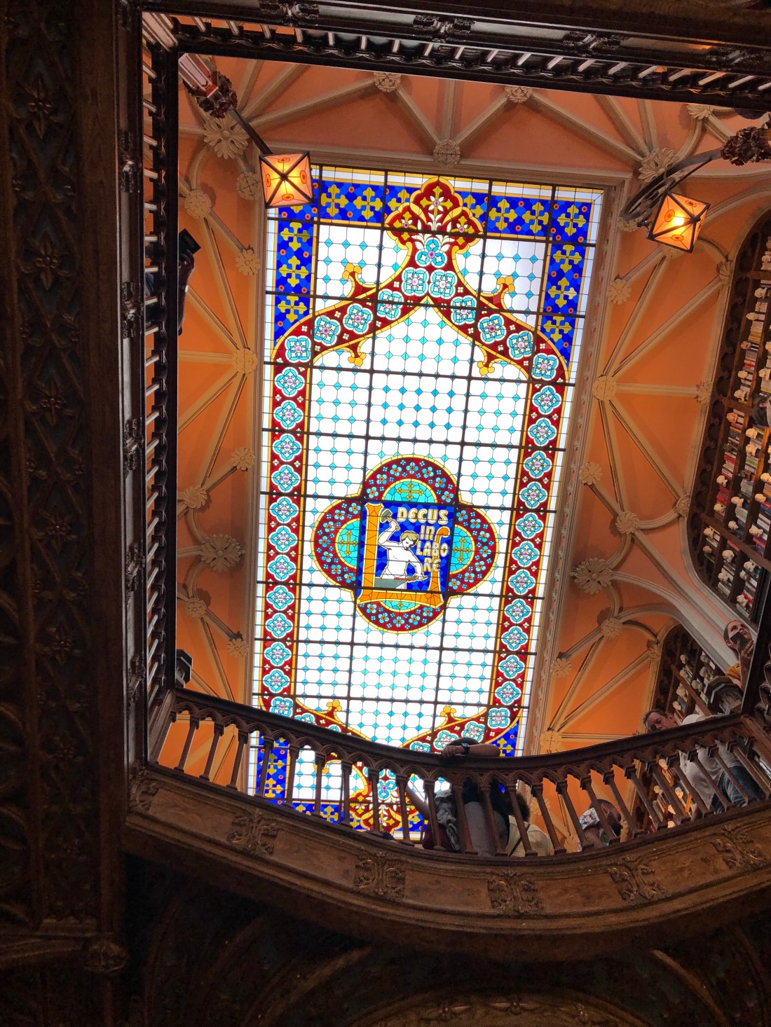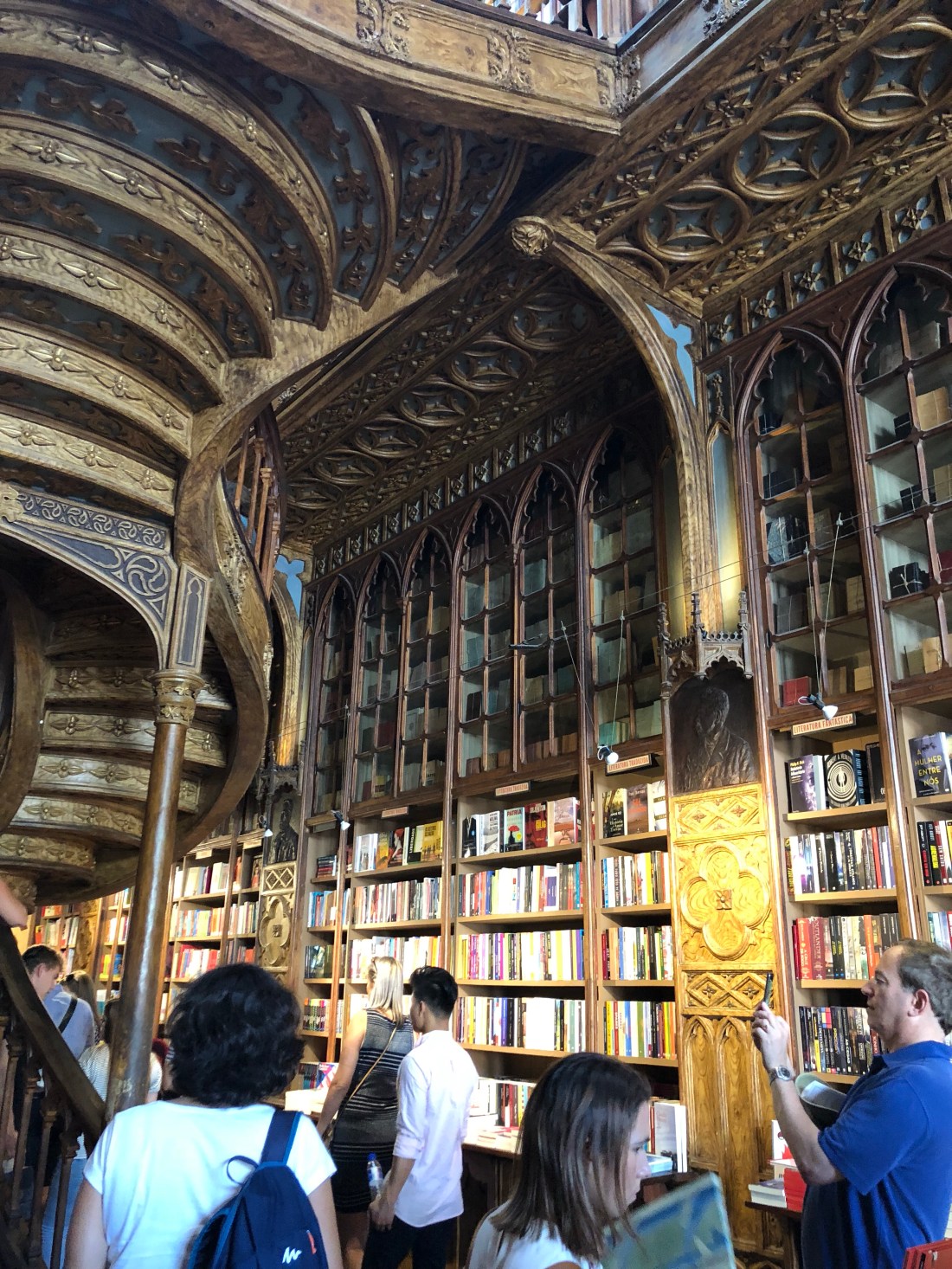 As you’ll see in the first couple pictures, I had a crazy shower…….Surround sound and a bunch of jets. Ok, it was a little bizarre, but good bizarre. It was a nice way to start the day. The hotel provided a light breakfast and then we were off. We rode the trolley/tram over to where the Lello bookstore was, but we were distracted by the university gift shop, which had some really cool and innovative gadgets. A short walk away was Lello, which today’s visit was planned around. Enjoy the pictures, because nothing I say will come close to describing how wonderful it is. Fran bought a couple books and we were off in search of lunch. But, this time we were distracted by a favorite china shop “Bordello Pinheiro”, where I found a piece I’d been wanting since June….. St Anthony as a sardine…..it’s a thing. We ended up at a lovely Art Deco cafe sitting under the trees….having a toaster for me and a crepe for Fran. But then, a lively coffee and port macaron which was fantastic! I ran across the street for just a minute to photograph the fanciest McDonalds I’ve ever seen, complete with pastry case.