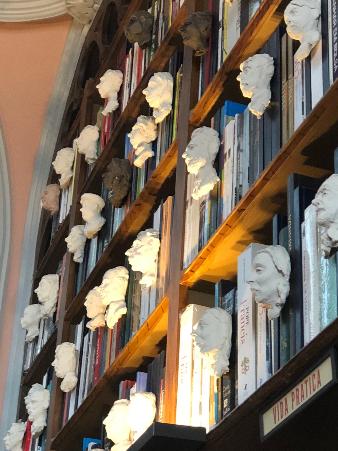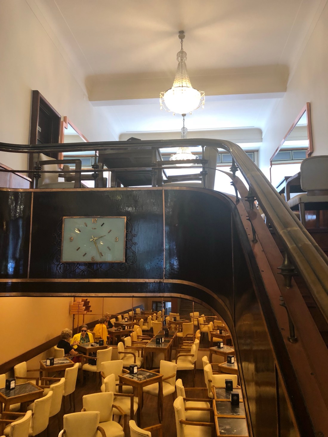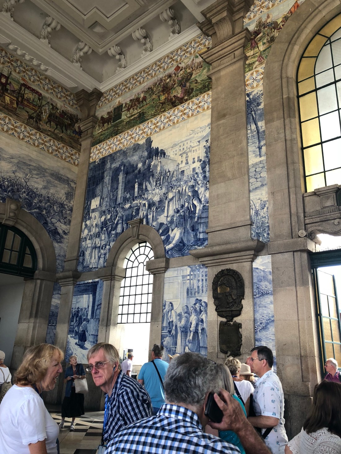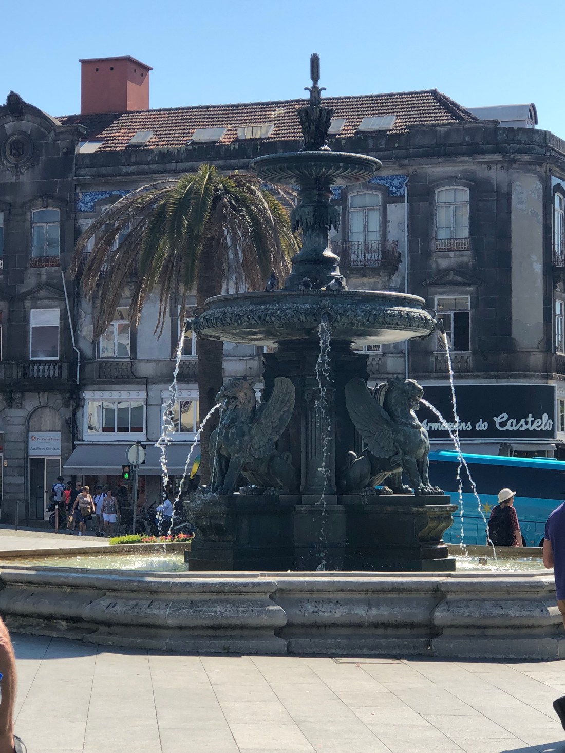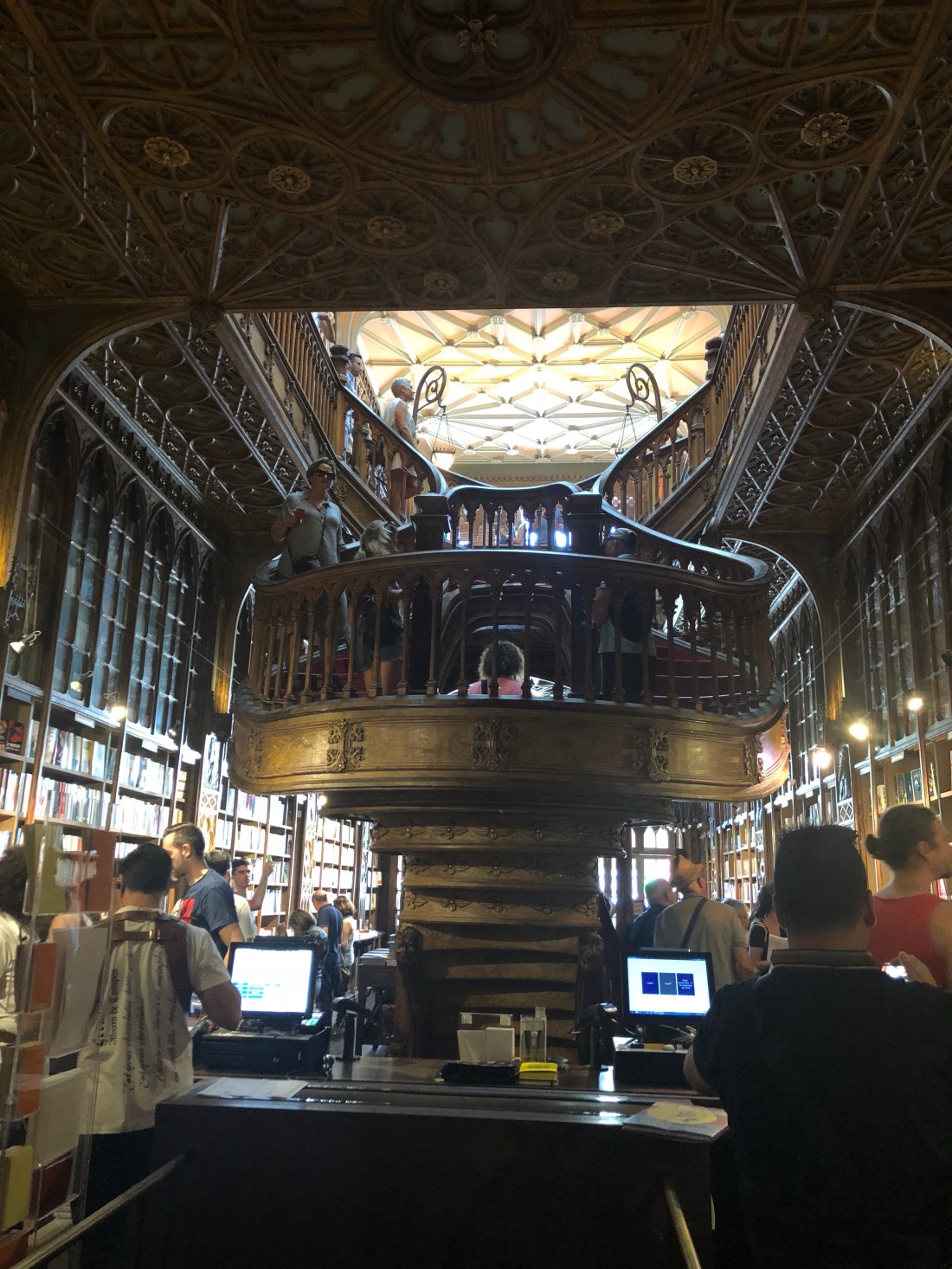 As you’ll see in the first couple pictures, I had a crazy shower…….Surround sound and a bunch of jets. Ok, it was a little bizarre, but good bizarre. It was a nice way to start the day. The hotel provided a light breakfast and then we were off. We rode the trolley/tram over to where the Lello bookstore was, but we were distracted by the university gift shop, which had some really cool and innovative gadgets. A short walk away was Lello, which today’s visit was planned around. Enjoy the pictures, because nothing I say will come close to describing how wonderful it is. Fran bought a couple books and we were off in search of lunch. But, this time we were distracted by a favorite china shop “Bordello Pinheiro”, where I found a piece I’d been wanting since June….. St Anthony as a sardine…..it’s a thing. We ended up at a lovely Art Deco cafe sitting under the trees….having a toaster for me and a crepe for Fran. But then, a lively coffee and port macaron which was fantastic! I ran across the street for just a minute to photograph the fanciest McDonalds I’ve ever seen, complete with pastry case.