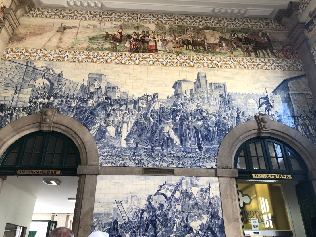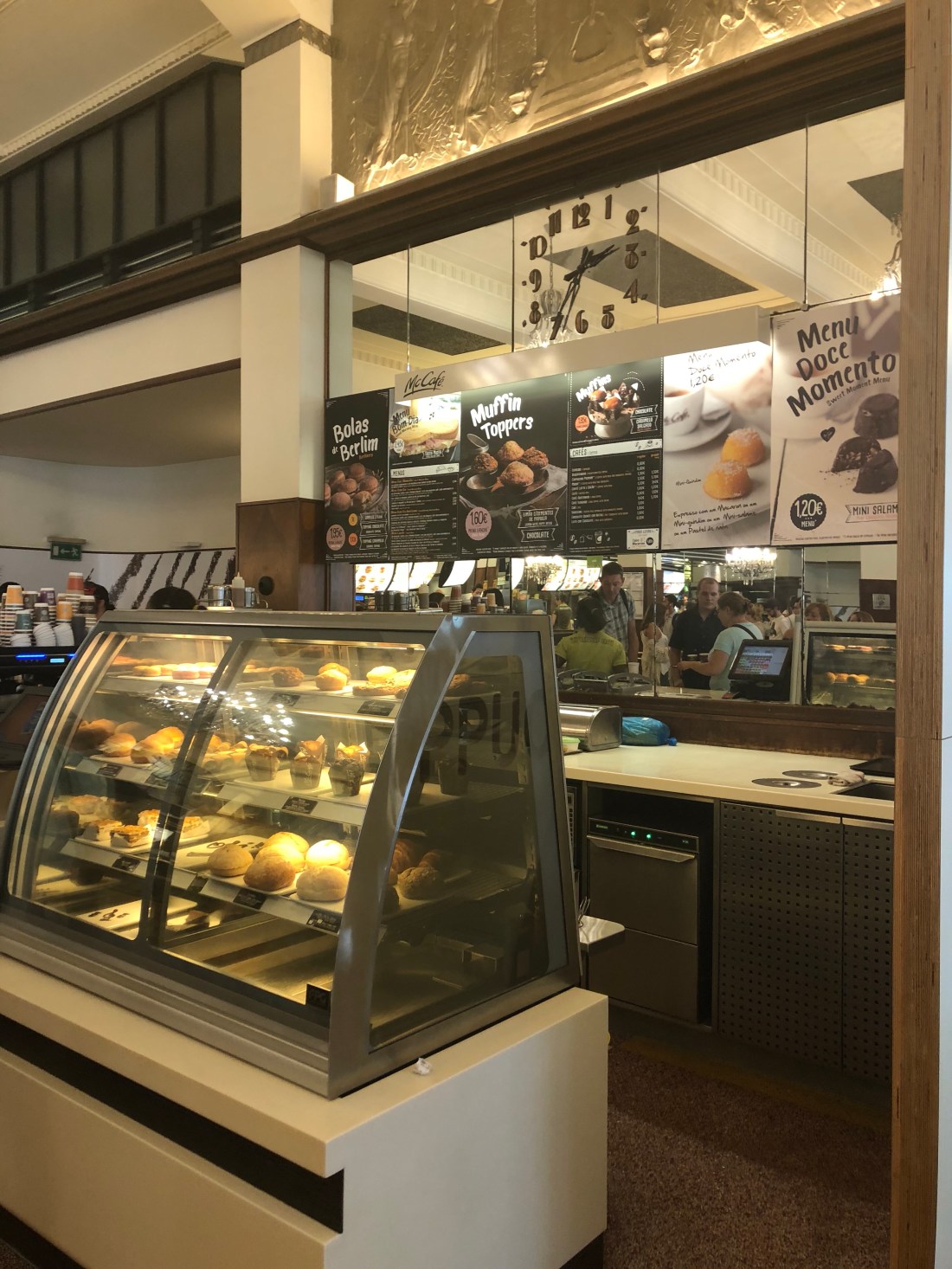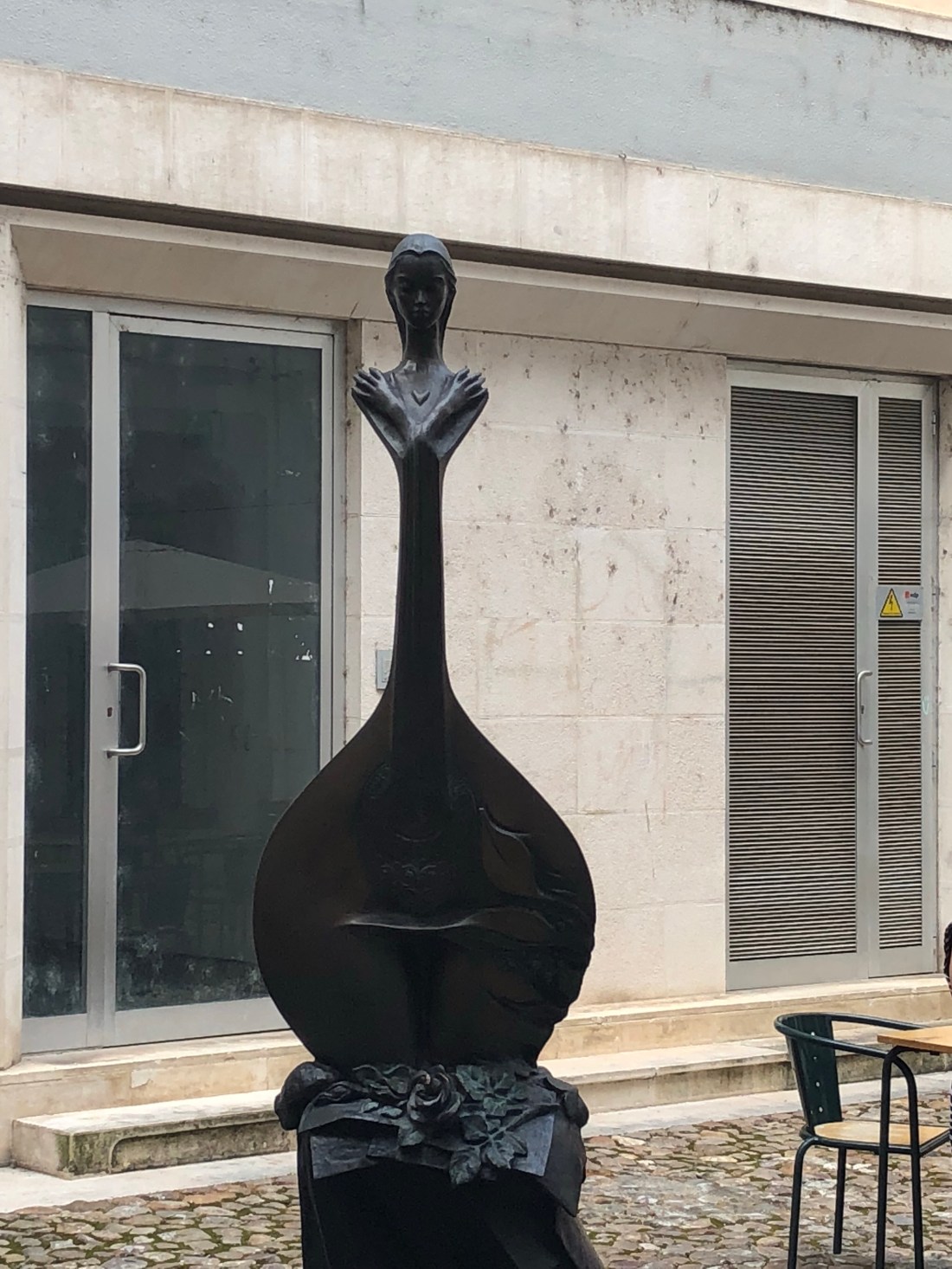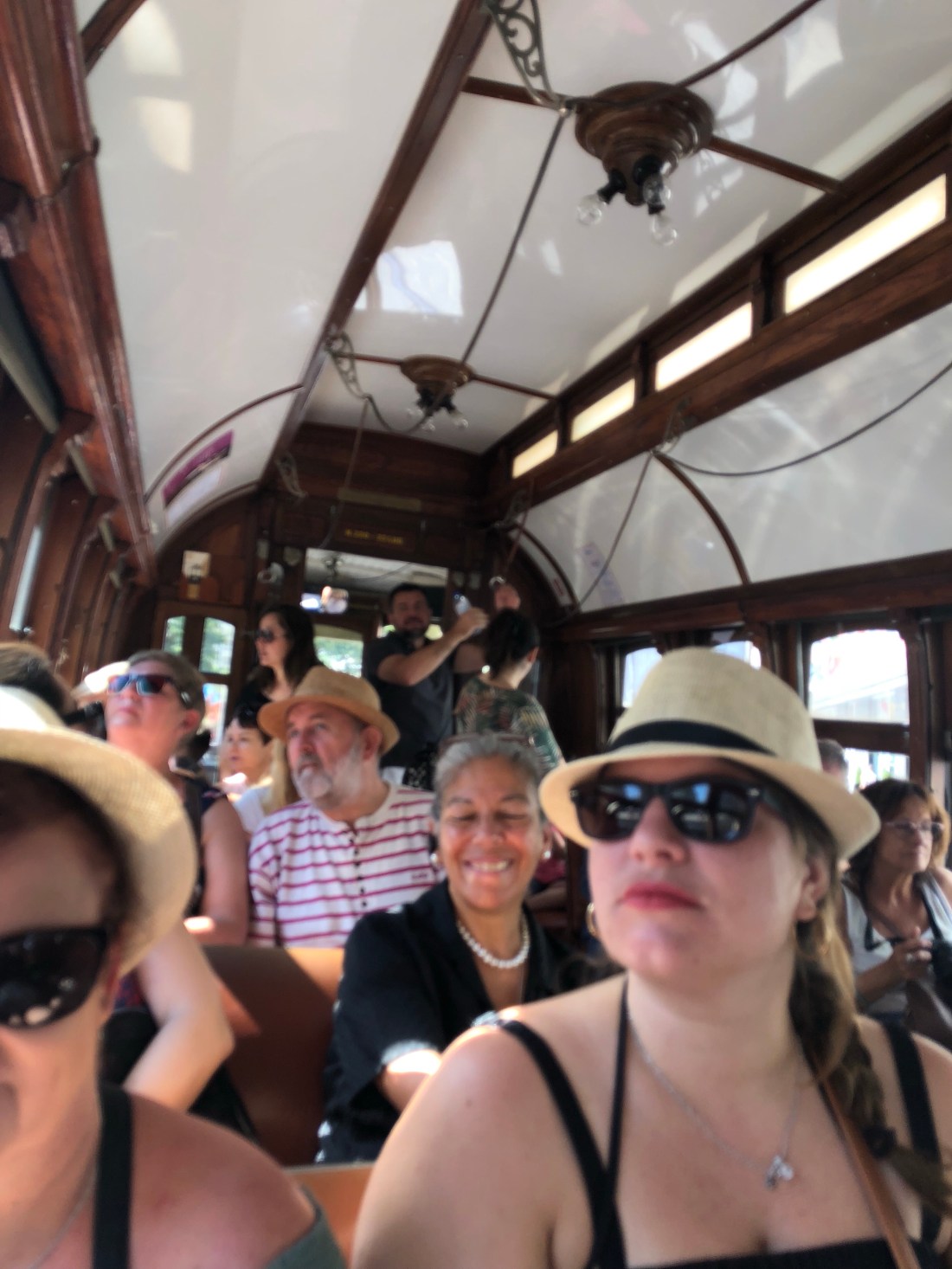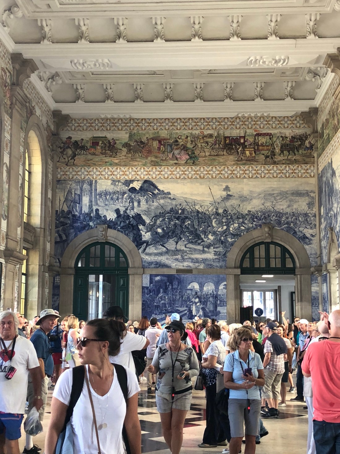As you’ll see in the first couple pictures, I had a crazy shower…….Surround sound and a bunch of jets. Ok, it was a little bizarre, but good bizarre. It was a nice way to start the day. The hotel provided a light breakfast and then we were off. We rode the trolley/tram over to where the Lello bookstore was, but we were distracted by the university gift shop, which had some really cool and innovative gadgets. A short walk away was Lello, which today’s visit was planned around. Enjoy the pictures, because nothing I say will come close to describing how wonderful it is. Fran bought a couple books and we were off in search of lunch. But, this time we were distracted by a favorite china shop “Bordello Pinheiro”, where I found a piece I’d been wanting since June….. St Anthony as a sardine…..it’s a thing. We ended up at a lovely Art Deco cafe sitting under the trees….having a toaster for me and a crepe for Fran. But then, a lively coffee and port macaron which was fantastic! I ran across the street for just a minute to photograph the fanciest McDonalds I’ve ever seen, complete with pastry case.
