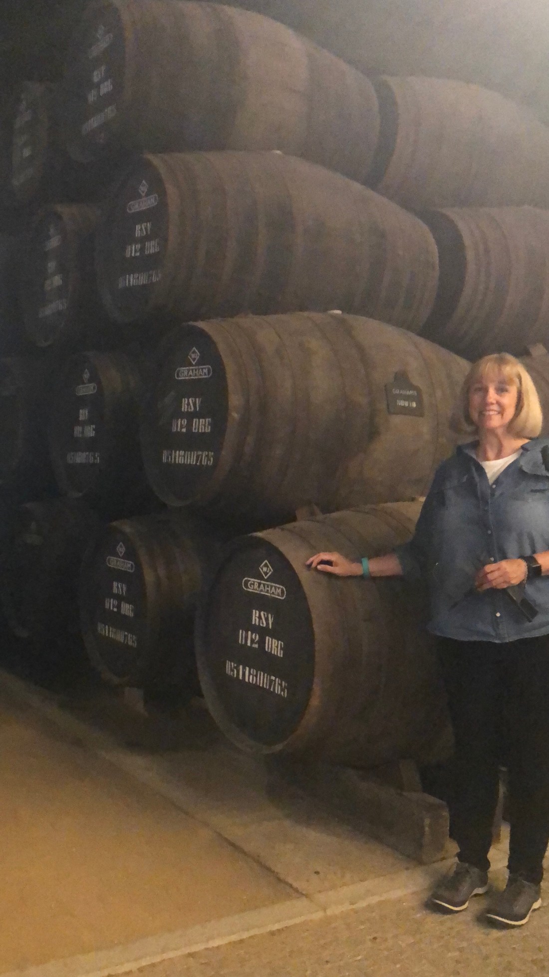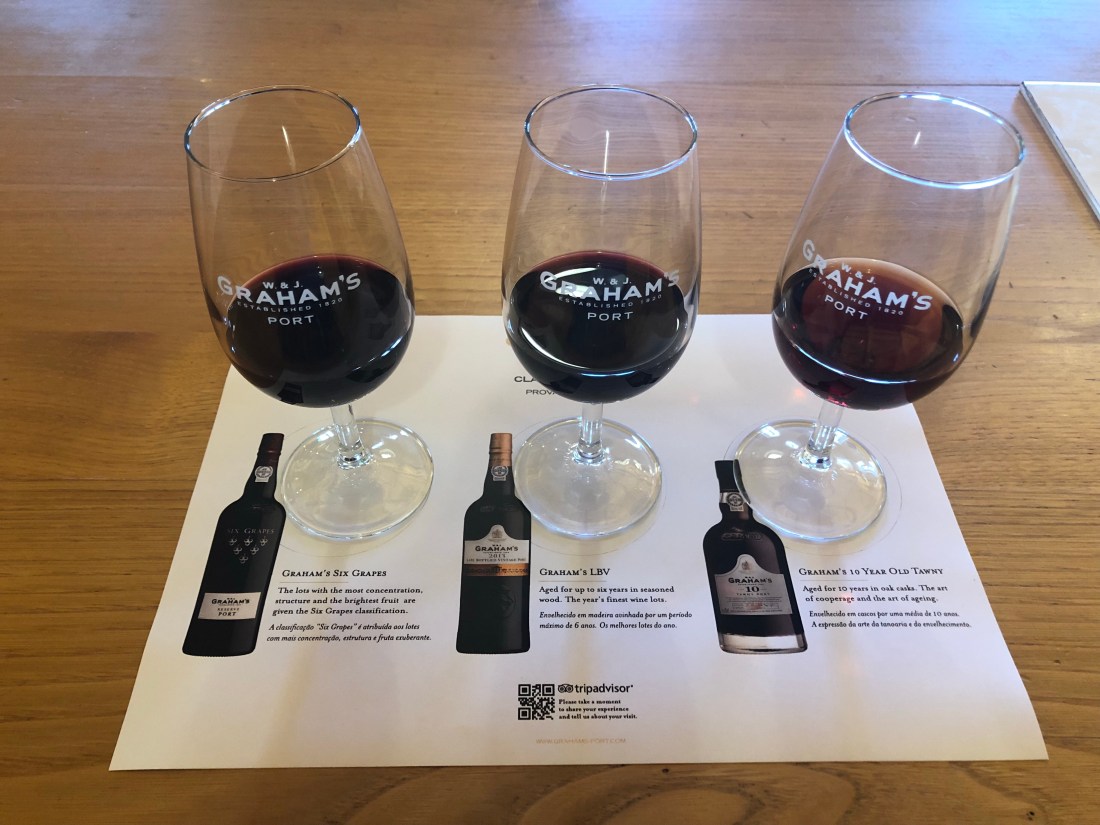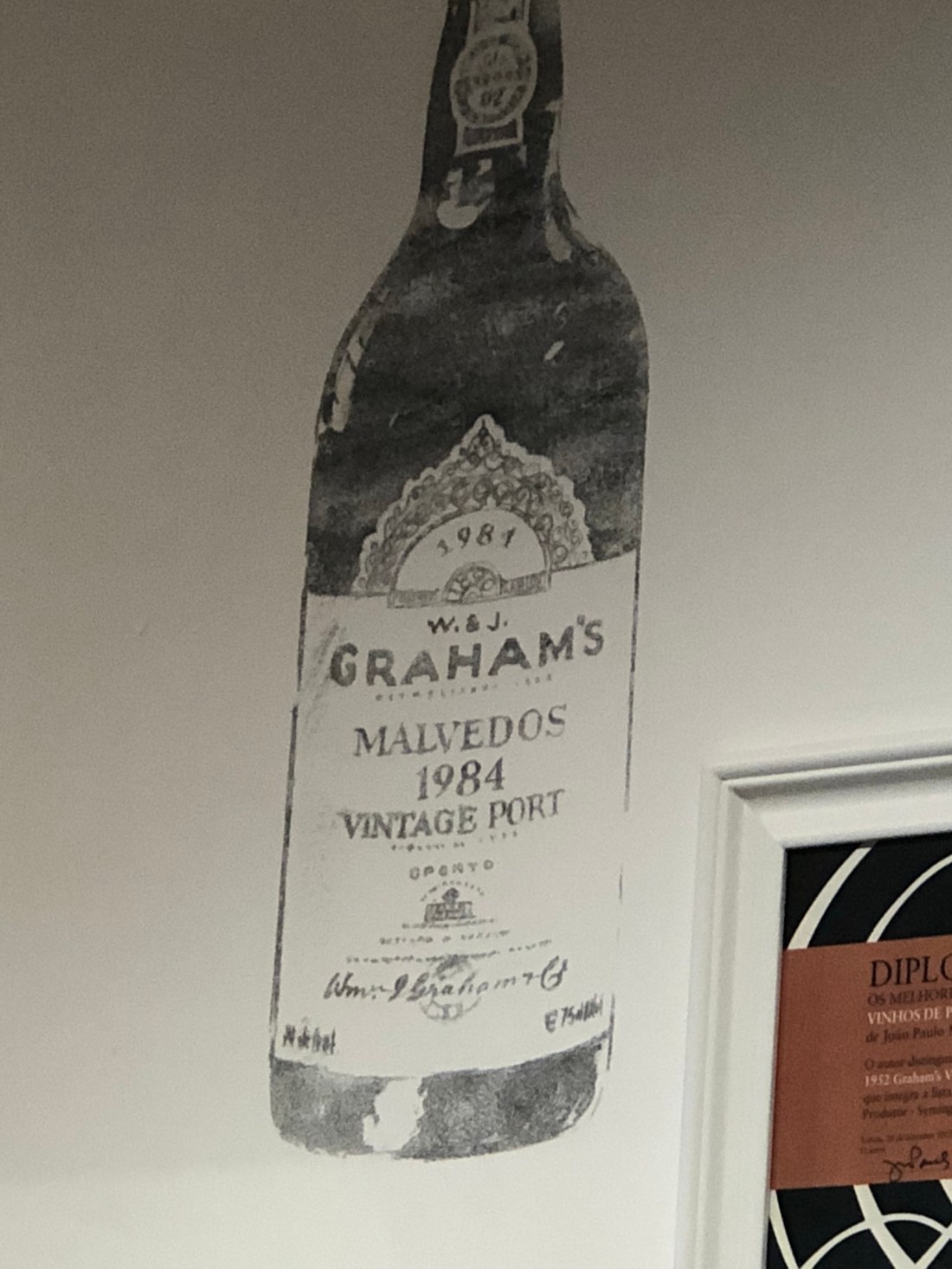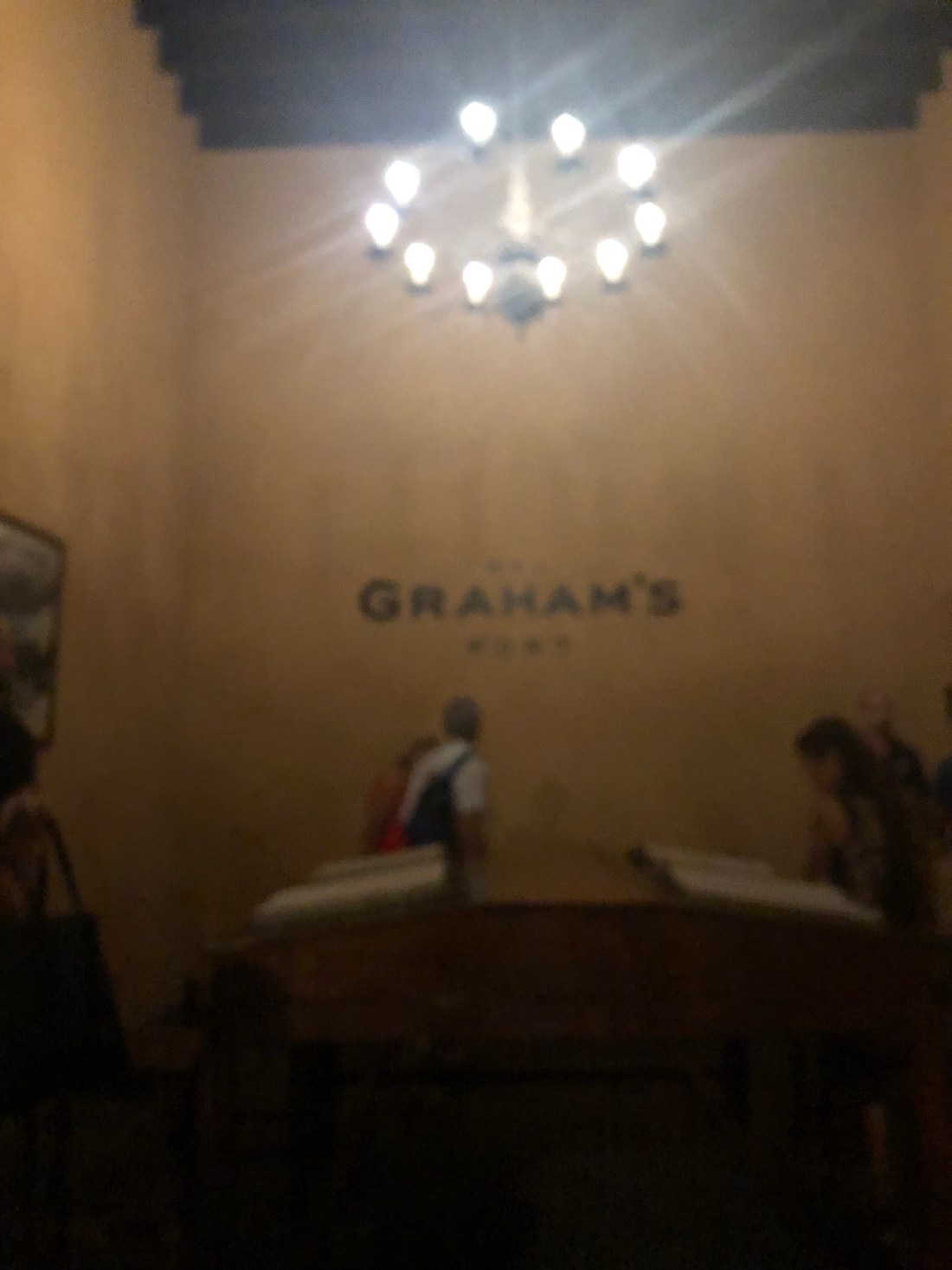 Next up, we grabbed a cab to head to the Graham’s tour, but he didn’t want to take us. Our reservation was for 3 and time was closing in. We hoofed it down the road and suddenly a cab appeared and the woman agreed to take us up the hill to Graham’s. The tour was fabulous!!! The aroma, incredible. And the tasting? Well, I did. This was a special occasion and I sipped all three glasses in my flight. Afterwards, I purchased one bottle available only there and in the UK and Fran bought 2 for Fritz. I just have to say, after serving Graham’s Malvedos vintage port for 20+ years of my career this was a special afternoon for me.
