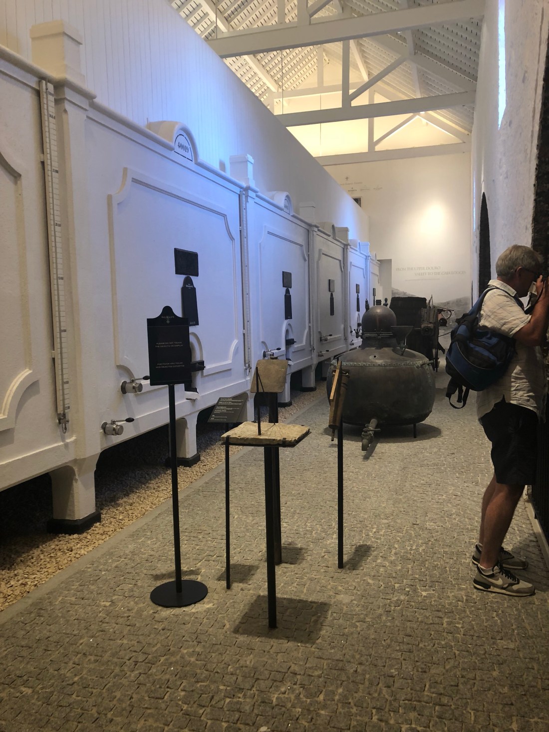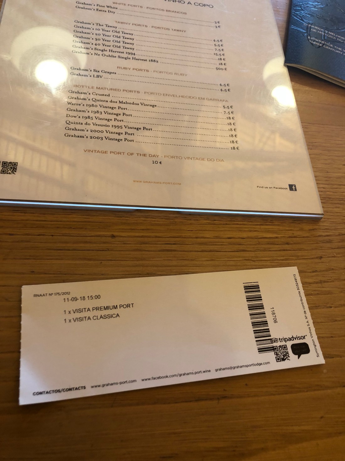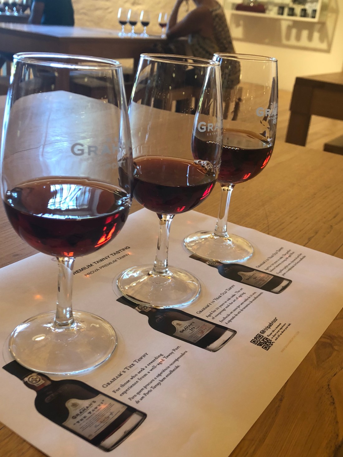 Next up, we grabbed a cab to head to the Graham’s tour, but he didn’t want to take us. Our reservation was for 3 and time was closing in. We hoofed it down the road and suddenly a cab appeared and the woman agreed to take us up the hill to Graham’s. The tour was fabulous!!! The aroma, incredible. And the tasting? Well, I did. This was a special occasion and I sipped all three glasses in my flight. Afterwards, I purchased one bottle available only there and in the UK and Fran bought 2 for Fritz. I just have to say, after serving Graham’s Malvedos vintage port for 20+ years of my career this was a special afternoon for me.